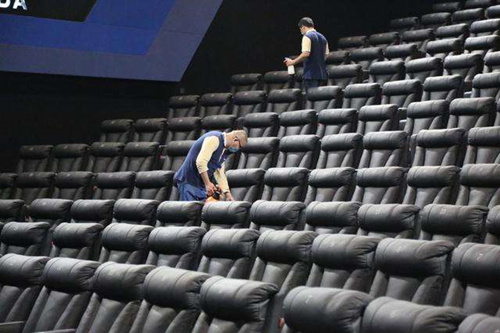 對于衛(wèi)生消毒,該版《防控指南》根據(jù)電影院的不同區(qū)域制定了相對細節(jié)的規(guī)定。其中,對于大堂、影廳、衛(wèi)生間、走廊、疏散通道等公共區(qū)域,《防控指南》指出,需每日不少于2次噴霧消毒;售取票機、商品售貨區(qū)、自動販賣機、公共區(qū)域座椅、入口閘機、衛(wèi)生間等重點區(qū)域,則需要每日不少于5次擦拭消毒;而在影廳座椅扶手、3D眼鏡等觀眾直接接觸物品,電影院需每場消毒一次;此外,電影院需要做好入場檢測,登記觀眾信息,檢查體溫,并在電影院入口配備手消毒劑。