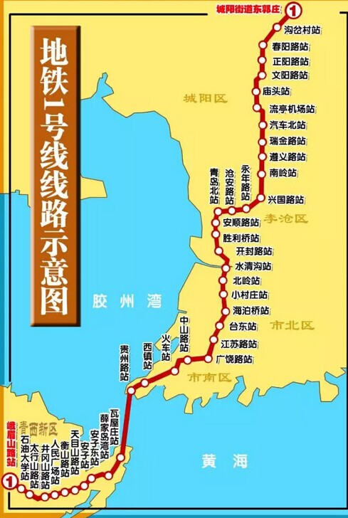 地鐵1號線設(shè)40座車站,其中換乘車站達(dá)12座,起點(diǎn)東郭莊站到終點(diǎn)峨眉山路站,連接了青島火車站、青島北站、青島機(jī)場、黃島汽車站、汽車北站等重要交通樞紐,是一條南北大動脈!