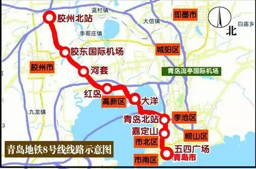 8號線連結(jié)了膠州市和市南區(qū)、市北區(qū)、李滄區(qū)